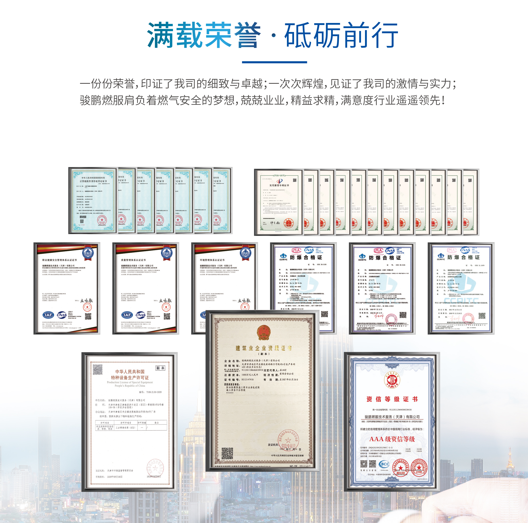 • 骏 鹏 燃 服 技 术 服 务( 天 津 )有 限 公 司 是 一 家 致 力 于 燃 气 产 品 技 术 研 发 与 燃 气 系 统 一 站 式 服 务 的综合技术服务商。